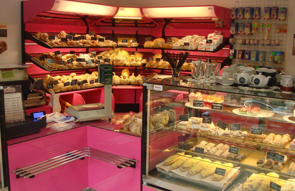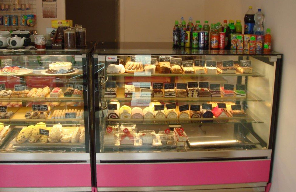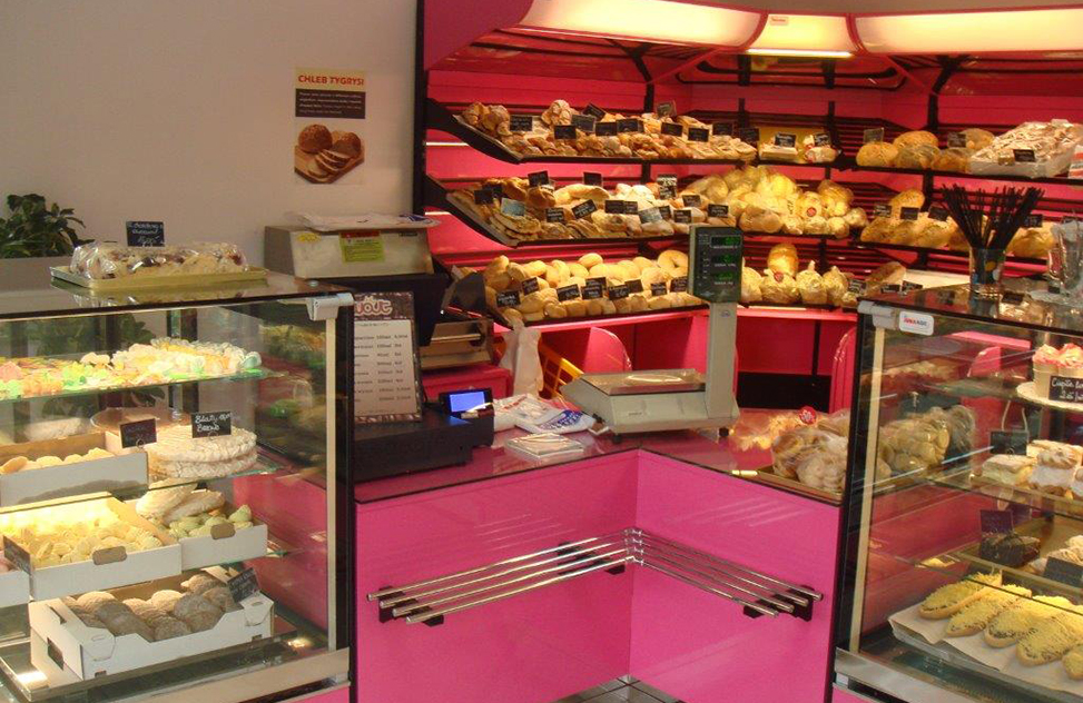 Odważna realizacja – wykorzystano tu elegancką linię MAGNUM w bardzo odważnej odsłonie kolorystycznej – różowej. W linii tej możemy znaleźć lady chłodnicze, stoliki kasowe, konserwator do lodów także w formie narożnika.